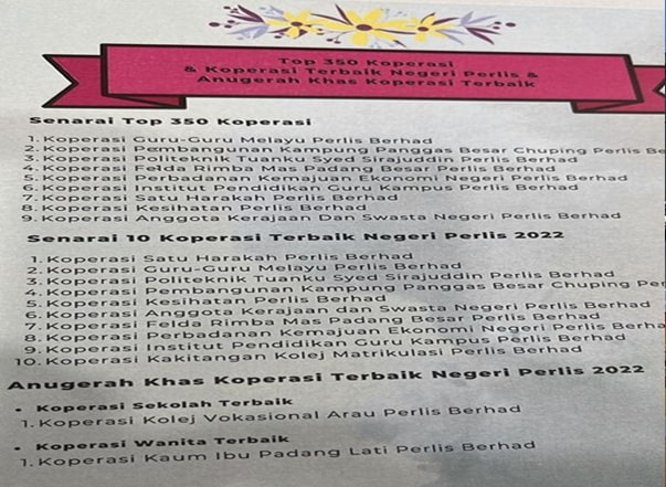 Dinobatkan sebagai koperasi terbaik IPTA 2022 sempena sambutan Hari Koperasi Negara 2022 Peringkat Negeri Perlis "100 Tahun Gerakan Koperasi Membangun Keluarga Malaysia" yang berlangsung di Perkarangan Pasar Terapung JPS Negeri Perlis.