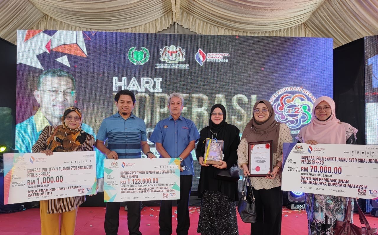 Koperasi Politeknik Tuanku Syed Sirajuddin (KOOP PTSS) telah berjaya meraih tempat ketiga dalam kategori Koperasi Terbaik Negeri Perlis, satu pencapaian yang sangat membanggakan bagi institusi ini. Kejayaan ini bukan sahaja mencerminkan kecekapan dan dedikasi pihak pengurusan dalam menguruskan koperasi dengan sistematik, tetapi juga menunjukkan komitmen serta sokongan padu daripada para ahli yang sentiasa berusaha memperkasakan koperasi.